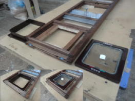 | 正面全体 幅:400o×奥行き:50o×高さ:1,735o 猫ハウスと屋内を出入りするためのサッシです。 以前、猫ハウスの製作を頼まれたお客様からの追加 注文でした。 |