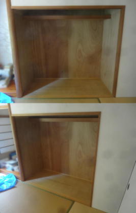 | 正面全体(取り付け前) 幅1,745o×奥行750o 押し入れに取り外しができる中棚の取り付けを頼まれました。 |