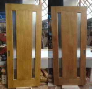| 右側斜め全体 古い引戸に貼ってあるシートがきれいに はがせないので、新しく作ってほしいとい うご依頼でした。 |