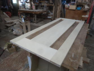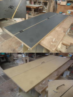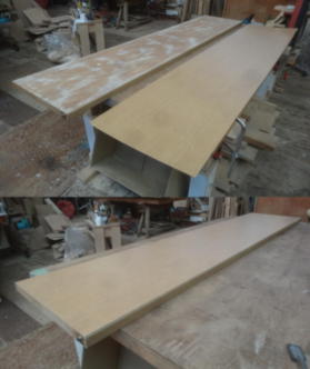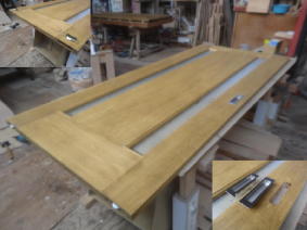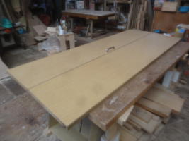 正面右側斜め全体 材質:シナランバーコア 木端は、シナテープを貼っています。 塗装:オスモ ワンコートオンリー オーク 1回 塗り |