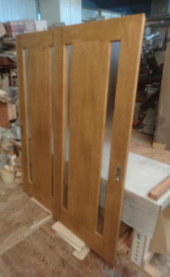 | 正面全体 幅855o×奥行き30o×高さ2,007o 古いものに使っていたガラスを再利用して作った引戸です。 |